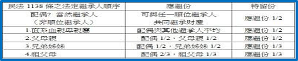 (三)配偶與兄弟姐妹同為繼承時,其應繼分為遺產之1/2。 |